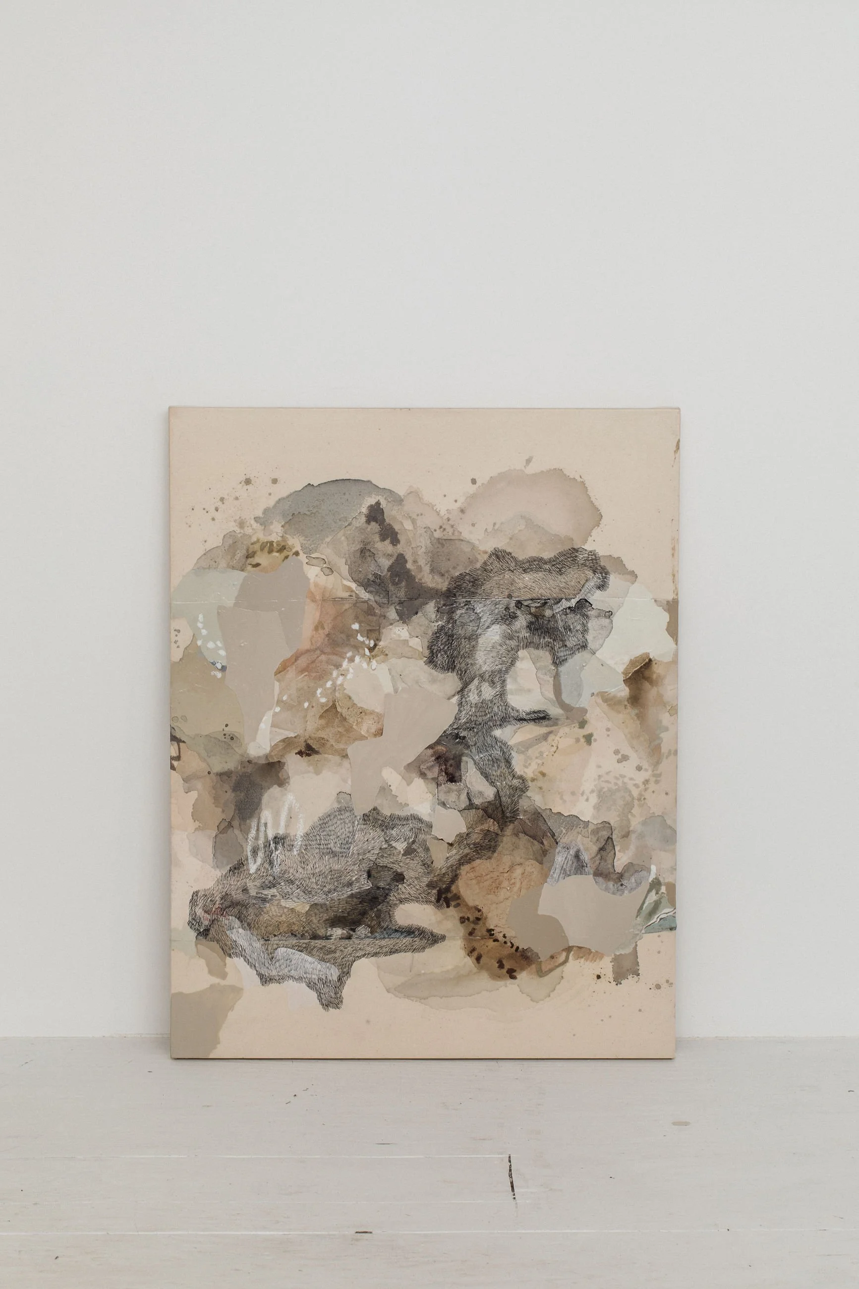 Acrylic paint, Pastel, Graphite on Sewn canvas, Framed